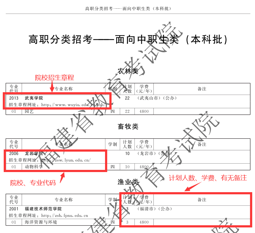 福建高職院校分類考試招生計劃
