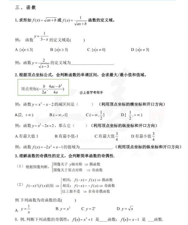 福建高職分類招考中職學考數學集合、不等式、函數知識梳理練習