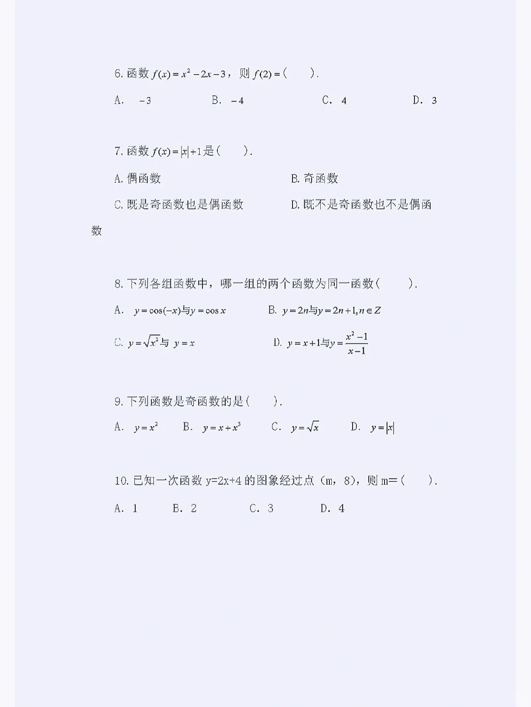 您現在的位置: 福建高職分類考試網 >  真題資料 > 數學  > 福建高職分類招考中職學考數學函數練習