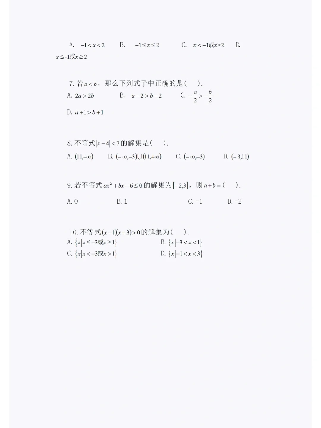 您現在的位置: 福建高職分類考試網 >  真題資料 > 數學  > 福建高職分類招考中職學考數學不等式練習