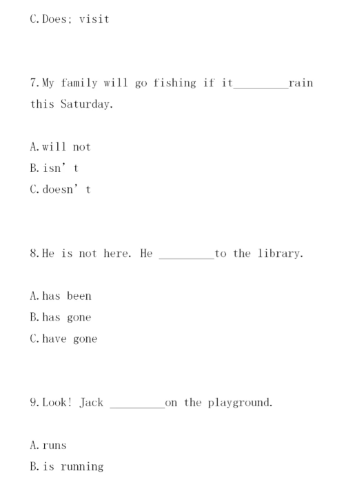 導讀:福建高職招考英語時態練習見下文,時態(tense)是一種動詞形式,不同的時態用以表示不同的時間與方式。它是表示行為、動作、狀態在各種時間條件下的動詞形式,在英語中有16種時態。