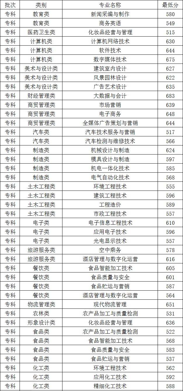 漳州職業(yè)技術學院高職分類錄取分數(shù)線
