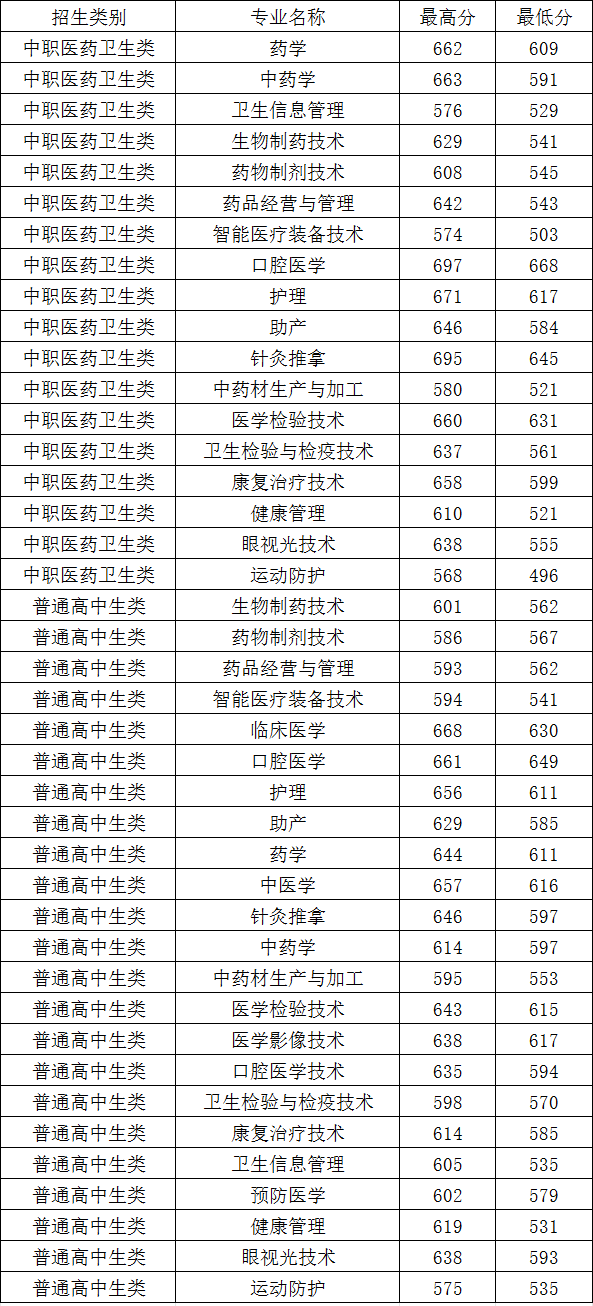 漳州衛生職業學院高職分類錄取分數線
